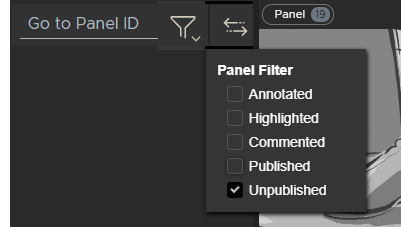 Check the Published option to see only panels that have been included in a previous publish to editorial.