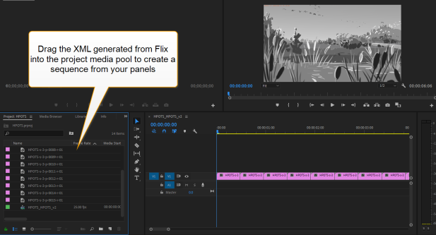 Warning: Check that the framerate and aspect ratio of your export matches those of your Show in Flix, otherwise your sequence will not be imported.