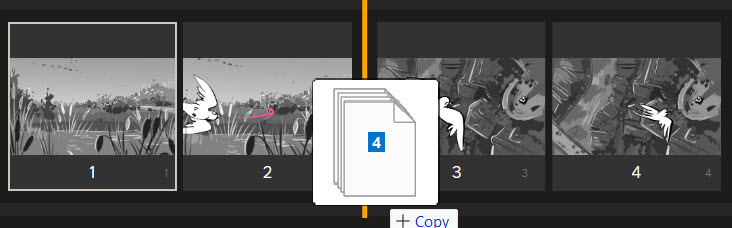 When you drag a file (or files) into the Flix panel, a yellow bar will appear to indicate where in the sequence the new panels will appear once dropped.