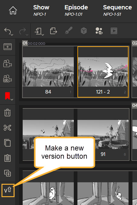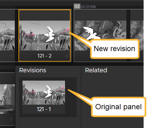 Note: Dragging a panel from the panel Library or from another Flix window will not display the version up option. You can only add as a new panel to your current sequence.