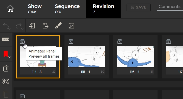 Preview all frames - Animated panels show all available frames in the panel viewer.