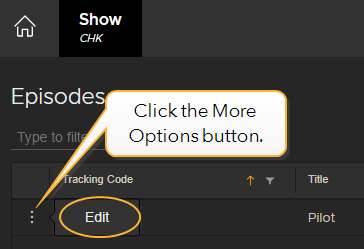 Using the breadcrumb, navigate to the Episodes level and click the kebab menu