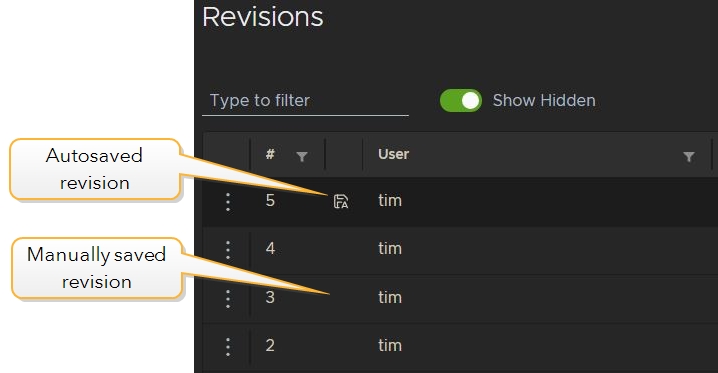The image below shows the Revisions level of a show. Every revision is listed on this page, with the latest always at the top. Use the filter to narrow down the list by comments that contain specific terms.