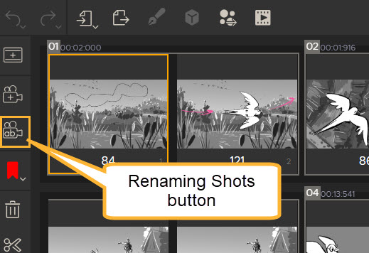 | 2. | Click the Rename Shot(s) button. Alternatively, go to Edit > Rename Shot(s), or press F2. |