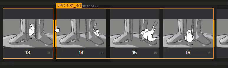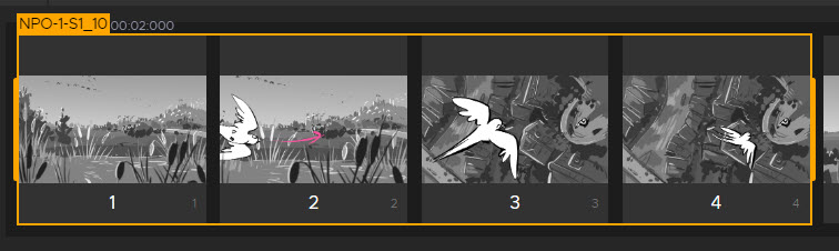 • Change Shot length - You can also drag the handles on either side of the shot border to include adjacent panels. If the handle reaches the start of a different shot, it cannot go any further.