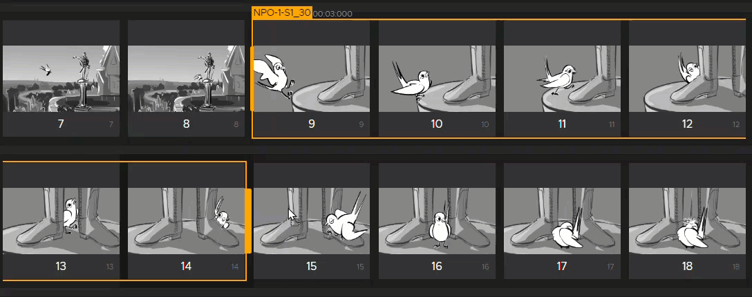 Shots are used to show certain sections of a sequence, such a character motion or camera move. In Flix you can create, modify and manage Shots within your Sequence Revision workflow. Shots work as a container for selected panels and can be exported to Storyboard Pro.