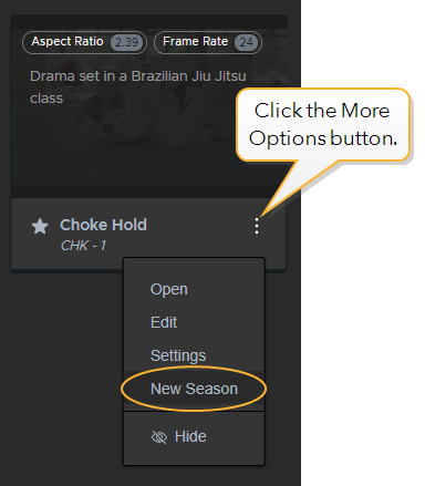 Note: If your show does not contain any episodes, a menu for creating a new episode opens here.