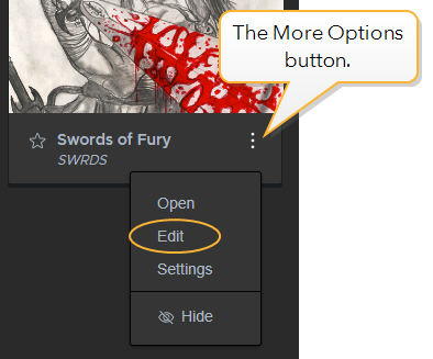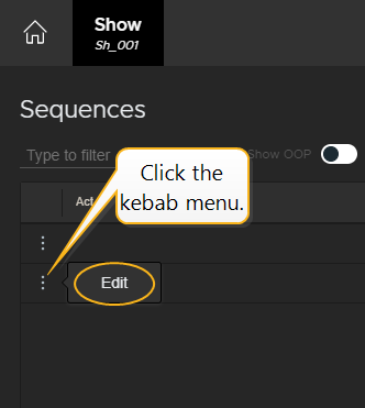 Navigate to the Shows level in the breadcrumb, click the kebab menu