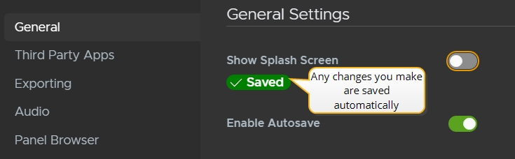 | Frame Rate | Sets your show's frame rate. Choose from the common film and television frame rates up to 30fps. |
