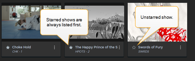 If you have access to lots of shows, it can be useful to mark specific ones so they appear at the top of lists. Flix allows users to star shows and remembers this setting on a per-user basis, meaning if you mark a show as starred it will only appear starred for you.