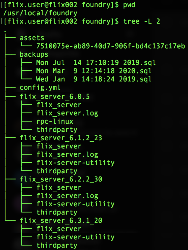 For example, if versions 6.0.5, 6.1.2, and 6.2.2 are installed and you want to upgrade to Flix 6.3.1, the install directory is arranged as follows: