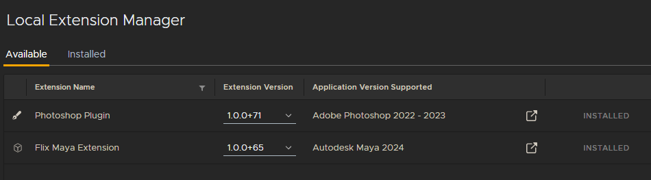 Use the Local Extension Manager to install or update the Maya extension. For full instructions, see Managing Extensions & Plugins.
