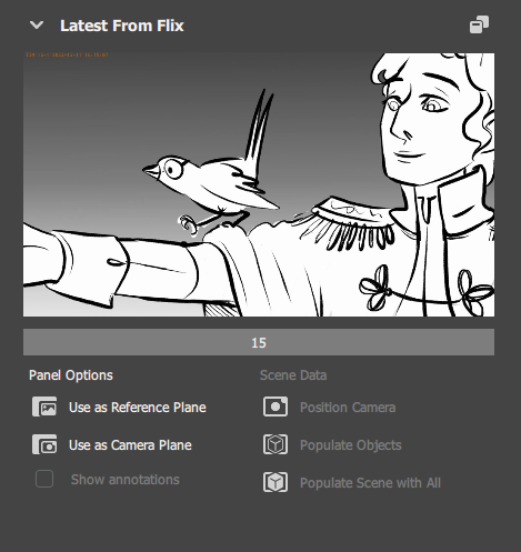 Once the panel is received, Maya populates the Latest Fom Flix section of the plugin with the panel image.