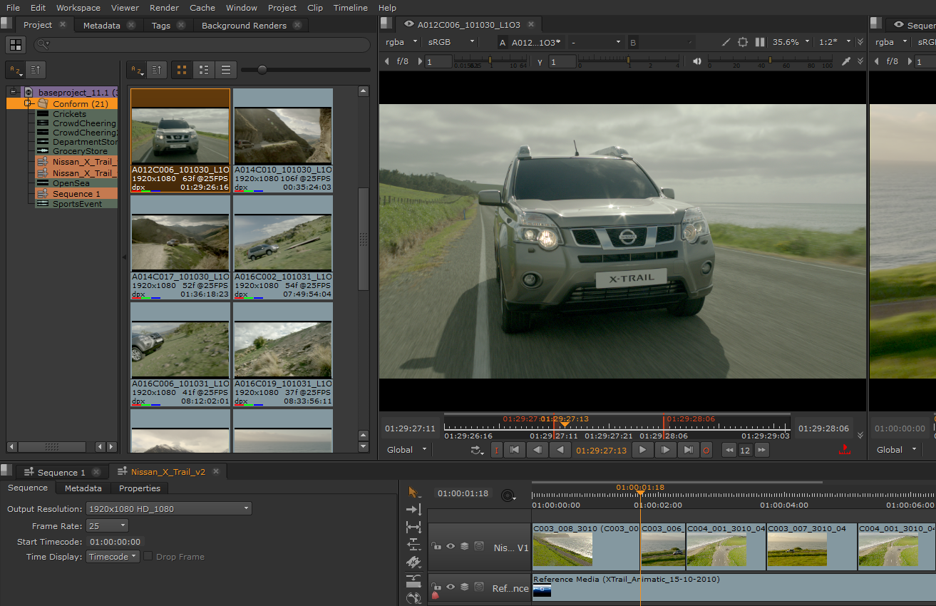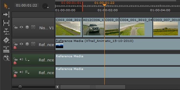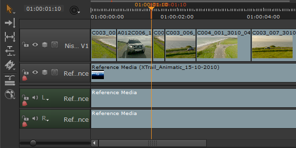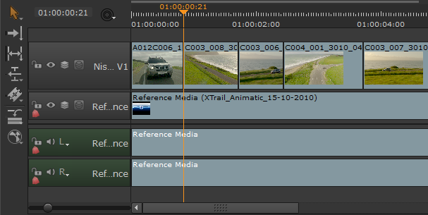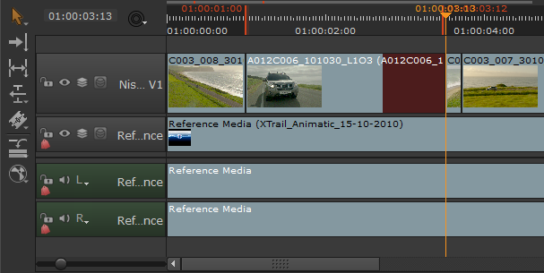 2.   Double-click the required source clip to load it into the left-hand clip Viewer .