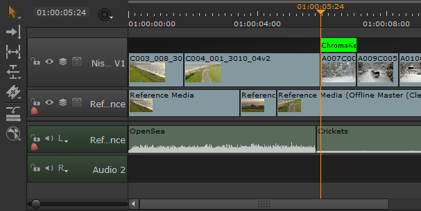 5.   Set In and/or Out points on the timeline to specify where the clip should be added and use Insert (N) or Overwrite (M) as required.