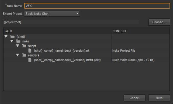 6.   Click Build to create the VFX track.