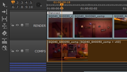 As a result of this, you may not get the frames you expect. For example, caching the shot in the image produces frames from the three shots on the highest track, including the soft effect, not the selected shot on the COMP track.