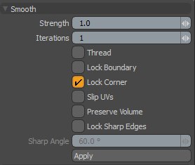 のSmoothツールは、で使用するための手続き型操作として利用可能ですメッシュ操作リスト。の中に手続き型プリセットブラウザ、このツールはProcedural >Deform。