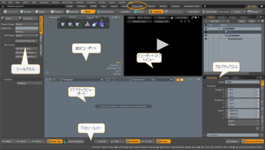 ヒント: 不要なパネルを非表示にすることで、レイアウトを最小限に抑えることができます。未使用のパネルを折りたたむと、大きな3Dビューポートと大きなPreview乱雑さが最小限のビューポート。