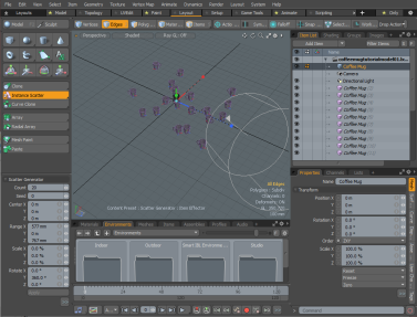 8つのマグカップが表示されます。デフォルトのクローン番号は、すべてに散らばっています。の中にToolsプロパティパネル、あなたは調整することができますCountあなたが好きな数に値を設定します。