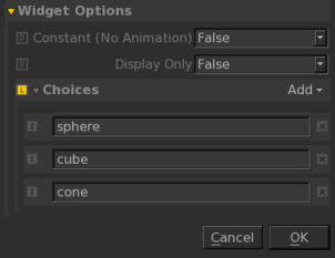 | 6. | Edit the pop-up menu to add new entries, each corresponding to a valid PrimitiveCreate node type. To do this, in the |