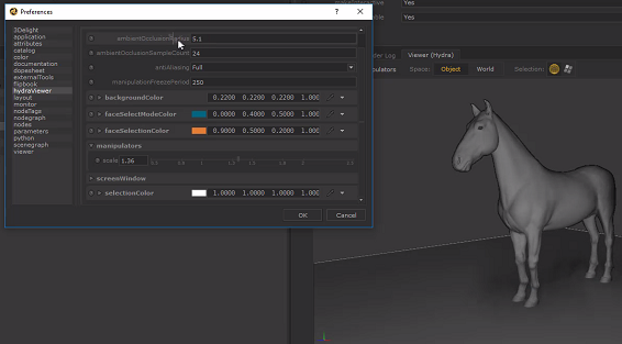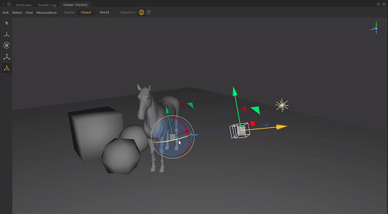 You can interactively modify parameters, on some nodes contributing to a scene graph location, using Manipulators within the Hydra Viewer. The manipulators available vary depending on the scene graph location selected, and the nodes that created it.