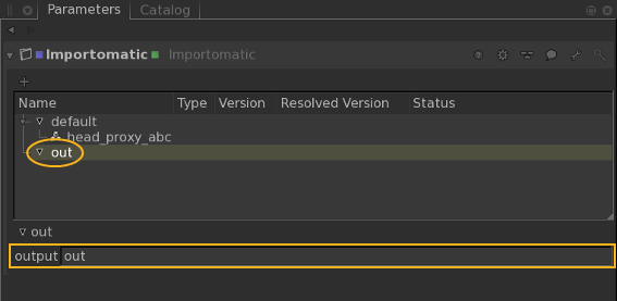 | 1. | In the Importomatic parameters, select the output in the hierarchy. |
