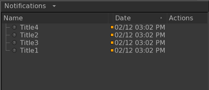 for i in range(4): notificationRecord = UI4.Util.NotificationManager.NotificationRecord('Title%d' % (1 + i), 'Text %d' % (1 + i)) UI4.Util.NotificationManager.AddRecord(notificationRecord)