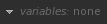 Displays any graph state variables that have been set in the Project Settings tab. If no variables have been set, the icon says variables: none; if there are variables set, these are displayed in yellow and can be changed dynamically to influence those in the Project Settings tab, or the other way around. For more information on how to set variables, refer to Setting Graph State Variables in Graph State Variables. |