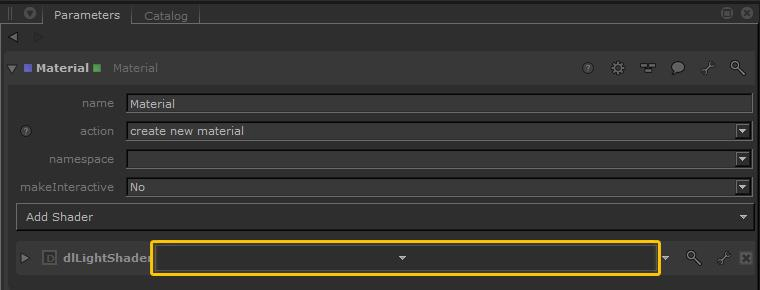 | 4. | Select Add shader > dl> light within the Material node’s Parameters tab. |