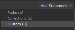 If you want this statement to affect all new and existing lights of a specific type in your scene, you can use an expression to access the attribute defining the light type. For this select Add Statements > Custom.