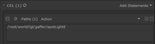 - For single lights, MMB drag the Scene Graph location for the light you want to be affected, into the Paths field.