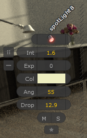 Click to toggle. When a light is muted it is omitted from renders. - S - Solo light.