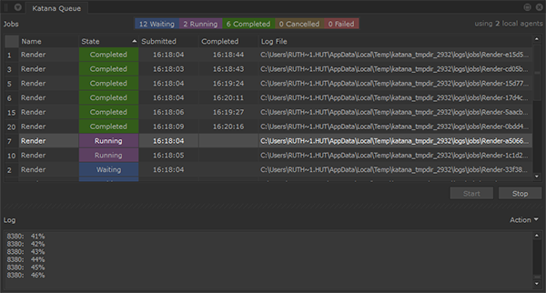 Render jobs are displayed in the Katana Queue tab.