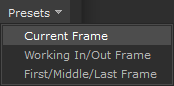 You can also use the Presets dropdown to select from Current Frame, Working In/Out Frame and First/Middle/Last Frame of the timeline of the current Katana project.
