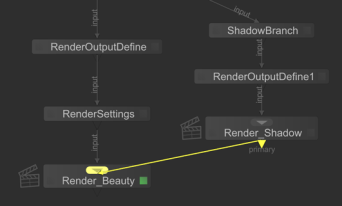 Some renders may require another render to be completed first, for instance the generation of a shadow map. You can set dependencies between Render nodes by connecting the output from the Render node that needs to be run first to the large connector at the top of the other Render node.