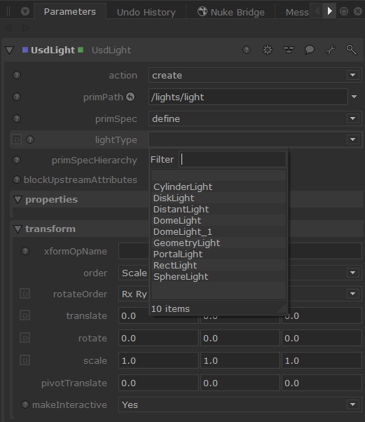 • Transform (xformOpOrder): Transform lights that are Xformable.