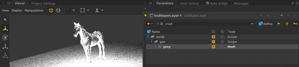 | 1. | Make sure you have added your mesh as an incoming prim to the UsdSuperLayer (to find out how to do this, see Adding Incoming Prims). |