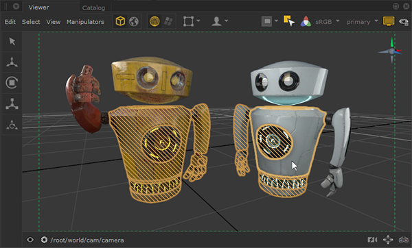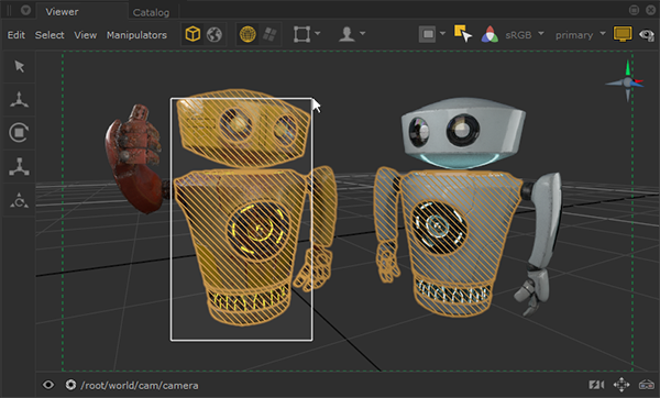 Scenes rendered in Katana include scene graph location information for each pixel in the rendered image. Image-Based Selection allows you to access this information when viewing a render from the Monitor Layer within the Hydra Viewer.