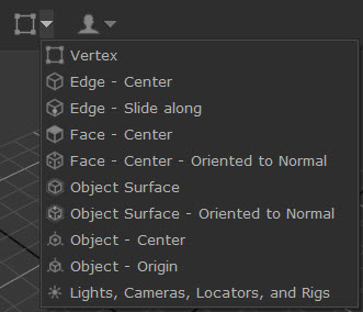 The type of snapping mode can be selected from the dropdown menu. You can use Shift + V to cycle through the available snapping mode options.