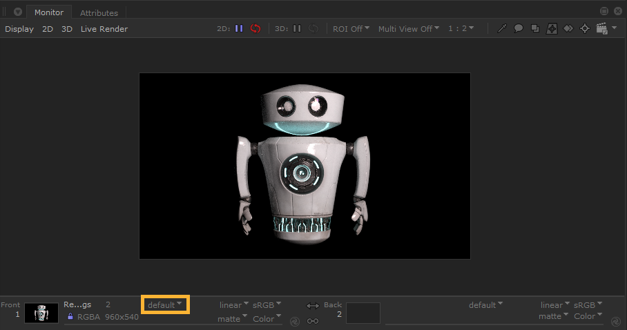 When more than just the primary pass is output during an interactive render, you can view all the outputs within the Monitor tab. To view outputs other than the default (primary) pass, select the output from the outputs dropdown towards the bottom of the Monitor tab. By default it is default or primary (depending on the render settings).