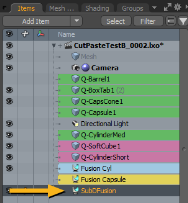 선택한 기본은 원본 퓨전 아이템과 분리되어 새로운 SubDFusion 항목은 Item List.