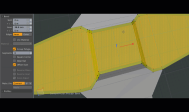 본질적으로 전체 선택을 단일 다각형으로 취급하는 연속 다각형 선택을 베벨하는 빠른 방법을 제공합니다. 이것은 일련의 경사를 만들어 선택 주위에 미세한 필렛을 추가하는 데 매우 유용합니다. |