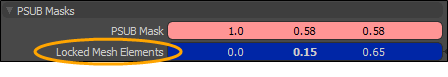 | 2. | 아래에 PSUB Masks, 설정 Locked Mesh Elements 필드의 값을 클릭 한 후 끌어서 색상을 선택하거나 필드를 클릭하여 색상 선택기를 열어 색상을 선택하십시오. 자세한 내용은 색상 피커 뷰포트. |