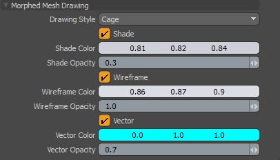 Shade Color -모프 케이지의 색상을 지정합니다. 셰이더, 와이어 프레임 또는 벡터가 활성화 된 경우에만 표시됩니다.