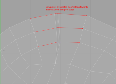 UV 반경은 브러시 반경으로 제어되는 오프셋으로 분할됩니다. 새로 작성된 UV 점은 컷에 직각 인 연결된 모서리를 따라 배치됩니다.