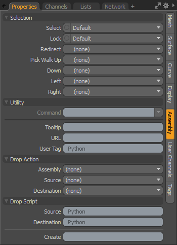 • User Tag -어셈블리 또는 장면 내 특정 항목을 식별하는 데 사용할 수있는 텍스트 문자열입니다. 이 태그는 스크립트를 사용하여 읽을 수 있습니다. item.userTag 명령. 사용 예제는 어셈블리 스크립트가 완료 될 때 삭제되거나 숨겨 질 항목을 식별하는 것입니다.