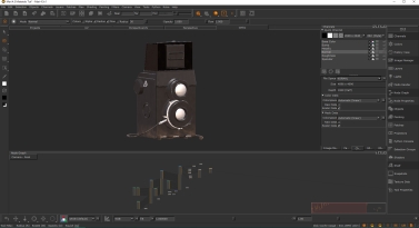 The Squiggle node creating the bump on this matte plastic material of an old fashioned camera asset.