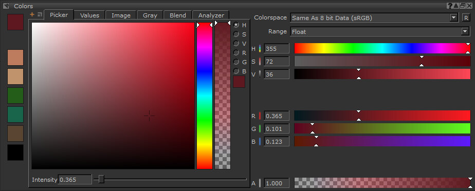 Note:  Value can go beyond 100% if picking colors from an HDR image and Saturation can go beyond 100% if picking colors from a Channel in a colorspace with a wider gamut than the color picking colorspace.