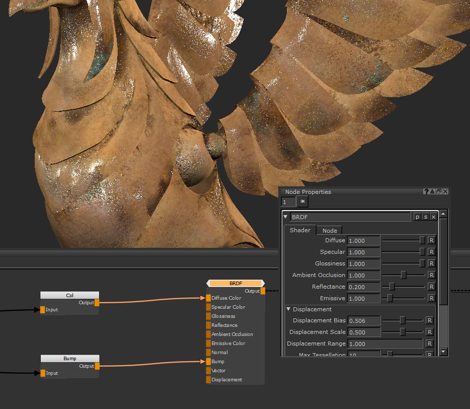 We can now start to visualize the object with specular and shadows rather than just flat color. From there, you can start plugging in other channels you have textured into your shader, such as a bump map into the Bump input.